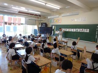 6月2日(木)2年2組の子ども達が、ALTと一緒に、英語でお互いの気持ちを伝え合うあいさつをしていました。朝のあいさつが上手な2年生なので、笑顔いっぱいに楽しく活動していました。