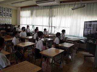 6月2日(木)5限目に、リモートによる全校集会を行いました。今月の校歌は、6年児童の伴奏動画に合わせ、1年生も一生懸命歌っていました。