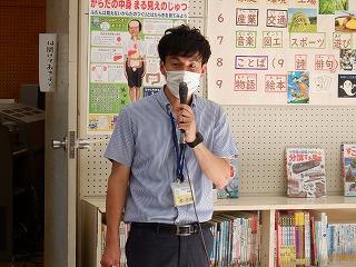 大会後には、後半の部の代表として器械運動実行委員の児童が、ケーブルテレビの取材に答えていました。しっかりと答えている姿から、実行委員として頑張った達成感が伝わってきました。