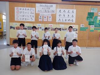 また、高みをめざした学年・学校になるように、前期中条っ子目標を「そろえて、やりきる」6月にしようと話がありました。子ども達は、最後までよい姿勢で聞いてくれていました。