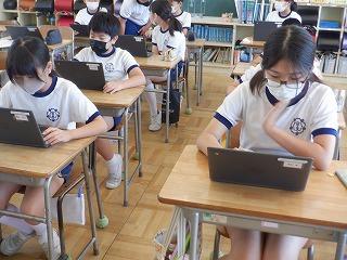9月5日(月)5年2組では、パソコンサポーターの指導のもと、プログラミングに挑戦していました。子ども達は、自分達がイメージした模様を描こうと、真剣な表情でプログラムを組み合わせ、思い通りに動くのを確かめると歓声を上げていました。