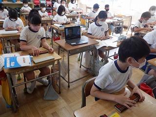 9月5日(月)4年1組の子ども達が、そろばんを使って学習をしていました。AIの時代に…と思われるかもしれませんが、そろばんに数を入れることで、大きな数や小数の位取りを確かめる力が付いていきます。子ども達は、友達と一緒に位の位置を確かめながら、楽しそうに学習していました。