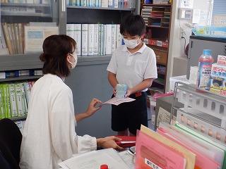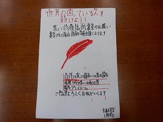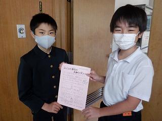 本日24日(月)昼休みに校内放送で全校児童に呼びかけた後、計画委員長と副委員長が作成したチラシを持って職員室にやってきて、早速募金活動に取り組んでいました。