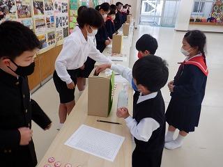 10月25日(火)朝休みに、計画委員が赤い羽根共同募金に協力してもらおうと、登校後すぐに全校児童に呼びかけていました。昨日配付したチラシの効果でしょうか。たくさんの児童が募金を持って集まってくれました。協力してくださった保護者の皆様にも感謝です。