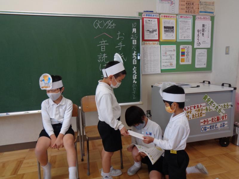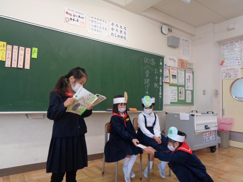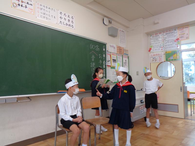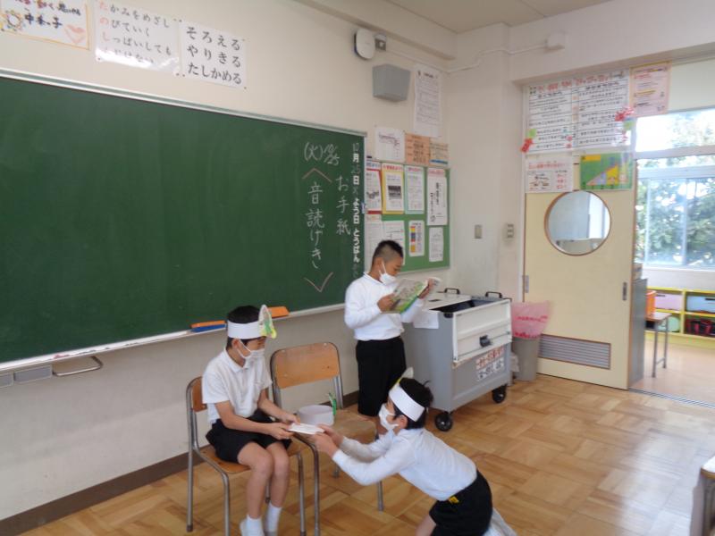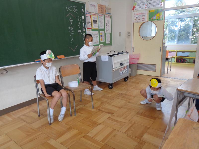 10月25日(火)1限目、2年2組の子ども達が、『お手紙』の音読劇をしていました。