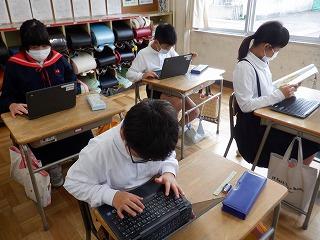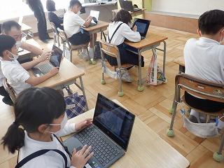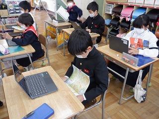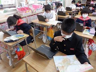 10月11日(火)4年2組の子ども達が、クロームブックで都道府県クイズを作っていました。地図帳を片手に、社会科で学んだ各県の特産品や特徴を基に、真剣な表情で問題を考えていました。どんな問題ができるか、楽しみです!