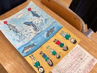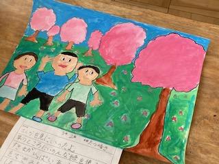 10月13日(木)3年2組の子ども達が、作品展に出品する絵画を仕上げ、鑑賞会をしていました。シーンと静まり返った教室の中で、一人一人友達の作品をじっくり見ながら、それぞれの工夫やよさを味わっていました。素敵な姿でした。