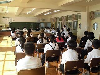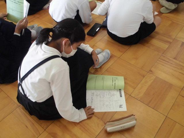 先週10月14日の金曜日、5年生は明日18日(火)に控えた体験学習のオリエンテーションをしました。実行委員会が、自分たちで作成したしおりを使って、めあてや活動内容・約束などを確認しました。この体験学習を通して、どんな力を身に付けるのか、めあてを達成するために何を考え、どう行動すればよいか一人一人自分でできるのかを考えながら、話を聞いていました。