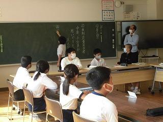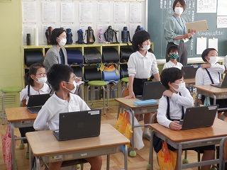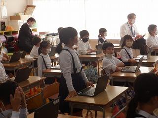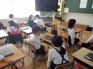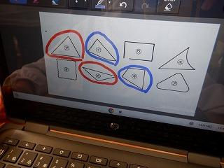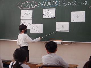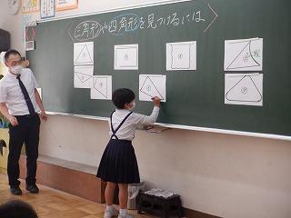 10月14日(金)町教育委員会の指導主事をお迎えして、2年1組で算数科の研究授業を行いました。この日は、三角形・四角形・どちらでもない形の3種類に弁別する学習でしたが、子ども達は、クロームブックを操作しながら自分の考えをもち、発表していました。