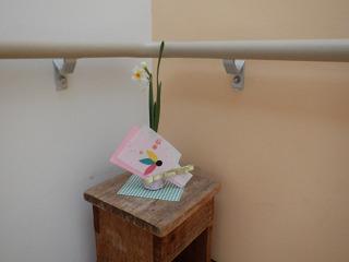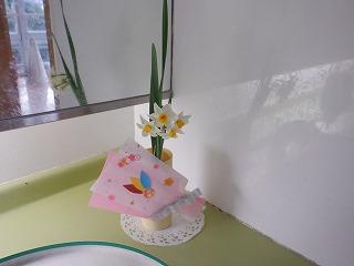 お花ボランティアの中西さんが、新年のお花を生けてくださいました。正月飾りのついた一輪挿しに凛とした水仙の花が、とても素敵に生けてあります。子ども達や教職員に向けての新年のお祝いをいただいたようで、有難く思っています。