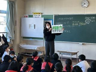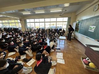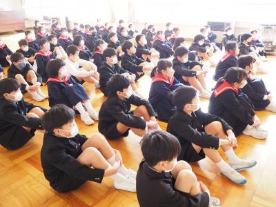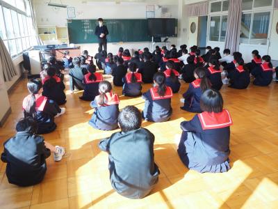 1月11日(水)3年生がマルテ教室に集合し、学年集会をしていました。学年主任の先生と一緒に、どんな4年生をめざして3学期を過ごしていけばよいか考えていました。