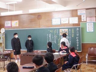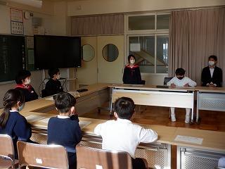 1月12日(木)昼休みに、2月に予定している「卒業を祝う会」のための特別代表委員会が行われました。参加した1~4年生各クラス2名の実行委員は、5年生実行委員会からの卒業を祝う会のスローガン・出し物・プレゼントなどについての説明をしっかりと聞き、自分たちの考えも伝えながら、みんなでお祝いする気持ちを高めていました。子ども達のよい姿から、在校生みんなで素敵な会にしたいという感謝の気持ちが伝わってきました。
