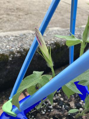 1年生が5月の連休明けに種をまいたアサガオの花が、いよいよ咲き始めました。
