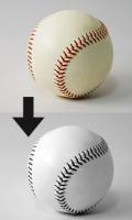 →野球ボールは白と赤。白黒にすると、赤いところは濃い色、白いところは薄い色になりました。濃さを比べてかいてみよう