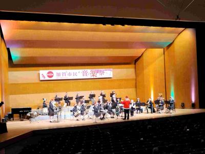 加賀高校・大聖寺実業高校の吹奏楽部の皆さんとともに演奏を披露し、部員一同、楽しい時間を過ごすことができました。
