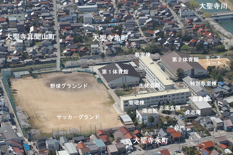 昭和23年4月1日、石川県条例第1号により旧大聖寺中学校と旧大聖寺高等女学校を 統合して石川県立大聖寺高等学校が設置されました。