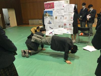 本校第2体育館にて、2年生同様に、ポスターセッション形式で発表しました。