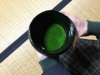 初釜で新春の一服(濃茶)と花びら餅を楽しむ様子。↓ |