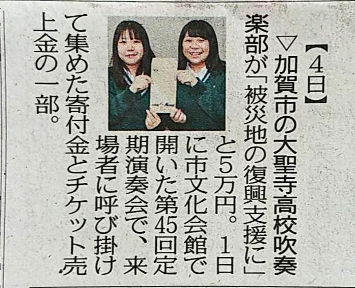 なお、当日お寄せいただいた「災害義援金募金」とチケット売り上げの一部を合わせまして、5万円を北陸中日新聞を通じて寄付させていただきましたことをご報告いたします。