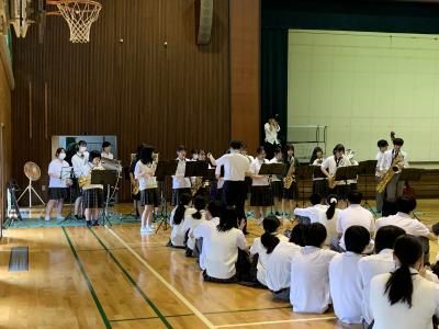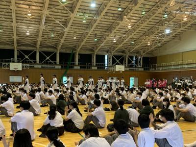 野球部、体操部、放送部、文芸部、吹奏楽部を全校生徒で激励しました。