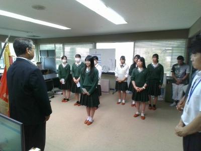 これから全国大会等の大会を控えた部活動の壮行式を行いました。