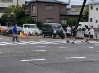 PTA生活指導委員の方々にもご協力いただき、歩きながらのスマホ操作や自転車の並進走行のような危険な行為に対する注意、左側通行の徹底等を指導しました。