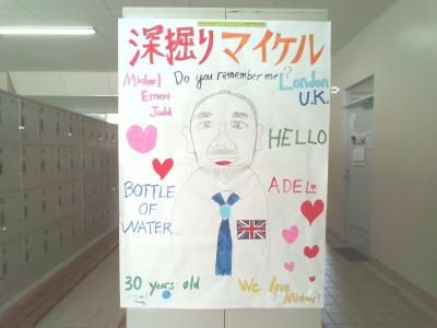 2年生と3年生の玄関には、マイケル先生(今年の7月までALTとして勤務していました。)のインタビューが書かれた『深掘りマイケル』が掲示されています。