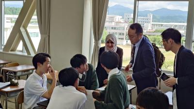 昨日、英国・アストン大学のサラ・ジュナイド博士が本校を訪問されました。1年生の総合的な探究の時間の授業を参観されて、生徒や先生にインタビューしていました。英国の学校の制度設計の参考にされるとのことでした。生徒も英語で回答しようと知識を総動員して話している姿が見られました。