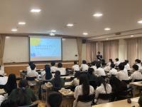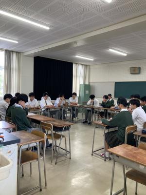 現役大学生の本校卒業生をお招きし、大学生活や高校時代の過ごし方などのお話を聞きました。
