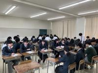 4限目に明日の共通テストに向けて激励会を行いました。弥久保校長からは自身の高校時代のお話を踏まえて、