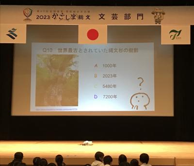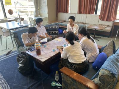 交流会では、石川県チームでクイズに挑戦しました。他校の生徒と協力して半分くらい正解できました。