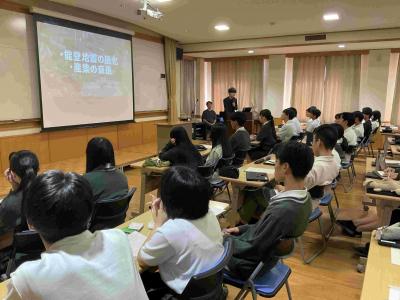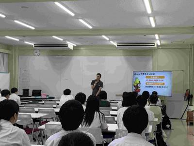 1年生を対象に「ふるさと教育・創造的復興教育推進事業講演会」が行われました。七尾市「岡田翔太郎建築デザイン事務所商事合同会社」より岡田翔太郎さんと、本校を今春卒業した「株式会社ADTO」の向出惺真さんをお招きし、講演と演習を実施しました。自分にはどんな挑戦ができるか、自分たちの暮らす地域に対して何ができるかを考える機会となりました。