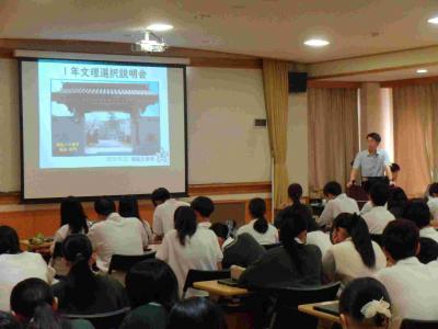 教務課、進路支援課、学年から文理選択についての説明がありました。