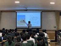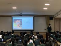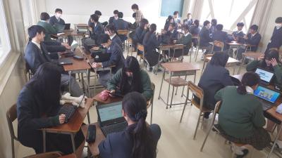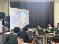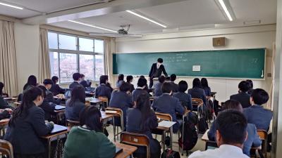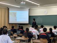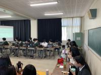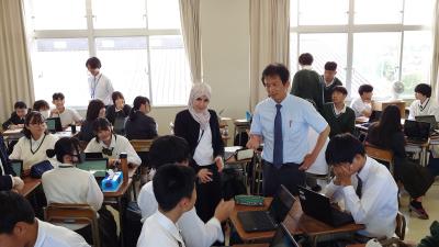 昨日、英国・アストン大学のサラ・ジュナイド博士が本校を訪問されました。1年生の総合的な探究の時間の授業を参観されて、生徒や先生にインタビューしていました。英国の学校の制度設計の参考にされるとのことでした。生徒も英語で回答しようと知識を総動員して話している姿が見られました。
