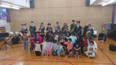 子供たちに楽しんで貰えるよう「ドラえもん」や「ミッキーマウスマーチ」などを演奏しました。