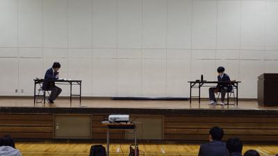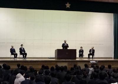 終業式、離任式後に今年度の難関クラブ卒業生の先輩に来ていただき、成功のための経験談をお聞きしました。