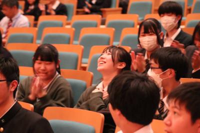 「萬斎からのメッセージ」石川県内学校公演2024と題して野村萬斎さんがプロデュースした「山月記」と「名人伝」の朗読劇を全校生徒で鑑賞しました。野村萬斎さんをはじめとする出演者の方々の迫真の演技や演技を彩る尺八や太鼓、観客を世界観に引き込む舞台装置などに魅了されました。生徒のみなさん、どんな感想を持ったでしょうか?先生の中には、胸の内を言葉に表した人もいるようです(さて、誰でしょうか??)。