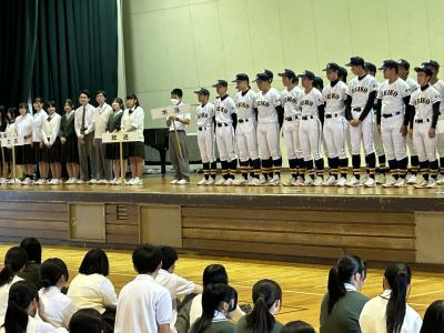 堂々とした司会で壮行式を盛り上げ、またその姿を見て、他校の