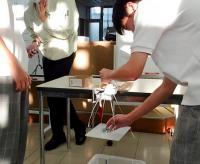 金沢工業大学で第2回KIT科学チャレンジが開催されました。本校からは来週19日に行われる「いしかわ高校科学グランプリ」に出場する2年生5人と1年生4人が、実技競技の練習を兼ねて参加しました。今日のお題は、コピー用紙12枚とセロハンテープで頑丈なクレーンを製作するというもの。まずは個人で試作したあと、チームでディスカッションしながら、1基のクレーンを製作しました。そして、どのチームのクレーンがより多くの重りを吊るせるかを競い合いました。1年生チームのクレーンがけっこう健闘していたようです。