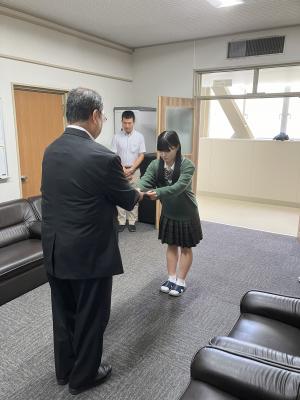北信越新人大会に出場する卓球部へ報償費の授与が行われました。