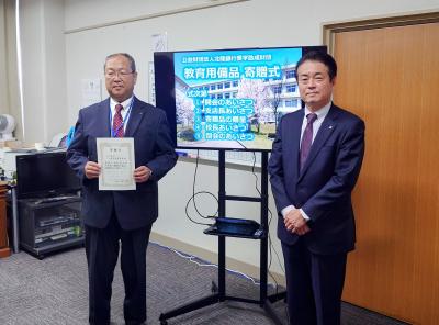 本日、北陸銀行大聖寺支店の支店長様が来校され、寄贈式が執り行われました。