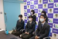 放送部が制作した「HAB 第20回 ふるさとCM大賞」のCMが、第3位を獲得した結果を受けて、山中アイスストリート事務局の方々と加賀市議会議員の今津さんが、本校放送部の努力を称えるため、ご来校くださいました。