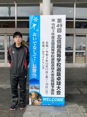 12月17日(金)~19日(日)まで長野県ホワイトリングで開催された北信越高等学校選抜卓球大会に2年吉田恵笙が出場しました。