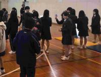 生徒会役員と1年生交流委員が錦城特別支援学校の生徒と風船バレーやクイズ、絵しりとりなどのゲームを行い、交流を深めました。ゲームを行う中で、自然と笑顔あふれる楽しい時間を過ごすことができました。
