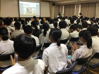 1年生を対象にNTTから講師をお招きして、携帯電話使用に関しての安全教室を行いました。