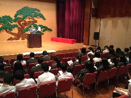 12日(月)に1年生の「非行防止教室」が行われました。大聖寺警察署の生活安全課のご協力を得て、携帯電話やスマートホンの使用時に守ることや使用のルールについてお話を聞きました。