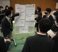 本校の2年生 唐谷侑花さんと佐野華穂さん(ともに東和中出身)は年賀状を出す人が少なくなってきた現状に対する考察、1年生の上村優太さん(南部中出身)、前多雄仁さん(山代中出身)、渡辺みゆき、荒谷夢月さん(ともに松陽中出身)のグループは加賀市の魅力を深める未来志向の提案がそれぞれ紹介されました。