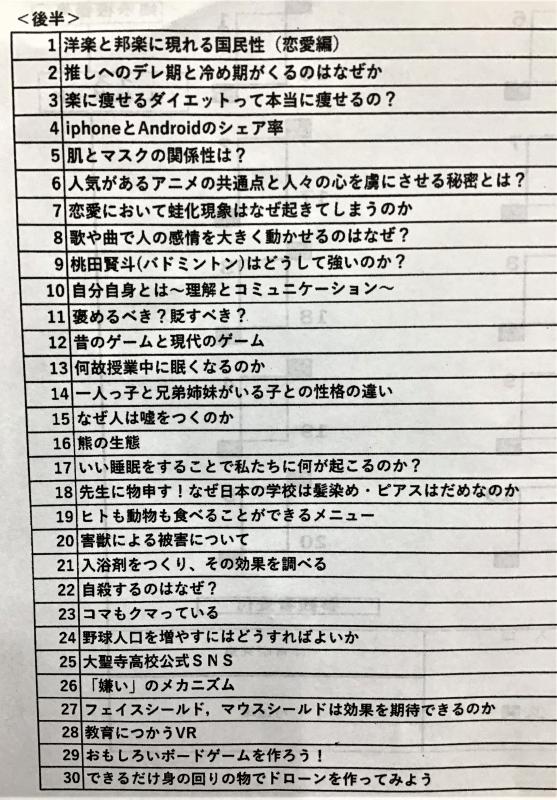 1年次における総合探究や情報の授業での経験を踏まえて、2年次では調べる内容がより深くなっている様子がうかがえます。