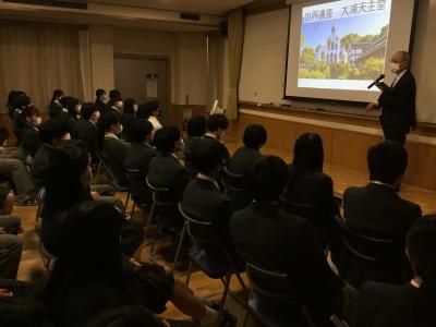 本日は地歴科の喜作先生より旅行先の長崎の歴史的背景や、見学地の見どころなどが紹介されました。