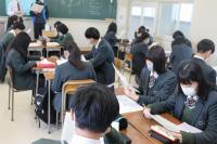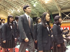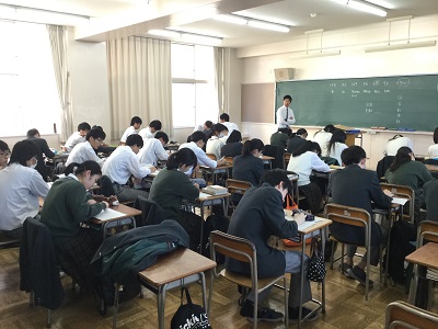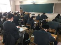 引き続いて、3年生の終業式が行われました。学校長は「最後まで全力で駆け抜けて下さい。」との言葉を贈りました。国公立大学の二次試験はこれからが本番。最後まで頑張ってください。